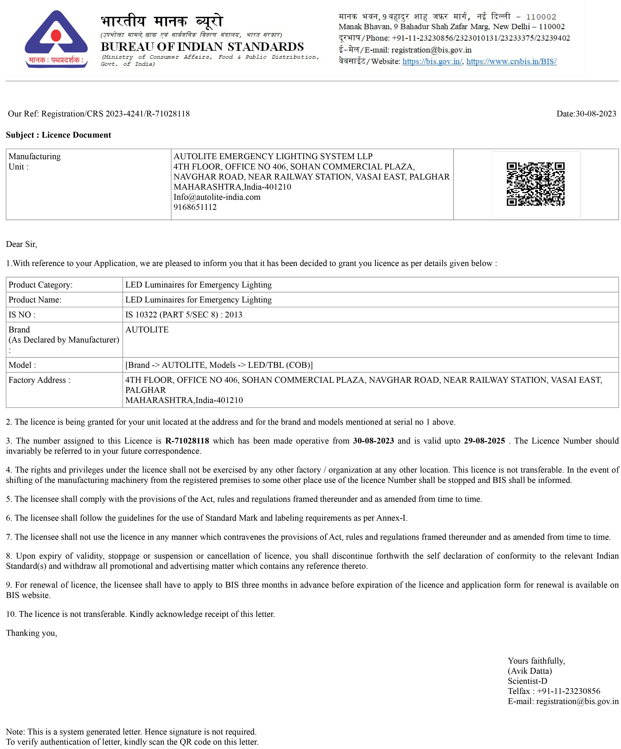 AUTOLITE. is an ISO 9001:2015 certified Indian company specializing in the research and development, manufacturing, marketing, and maintenance of emergency exit and egress route lighting systems
