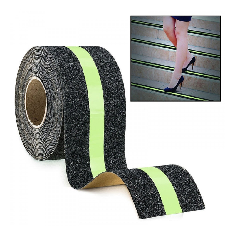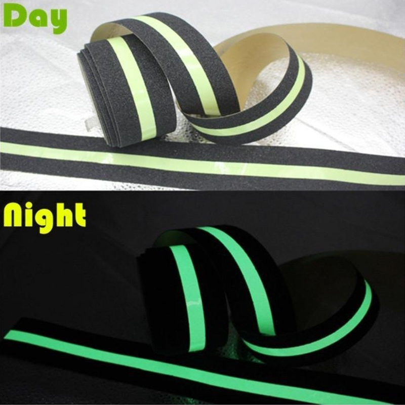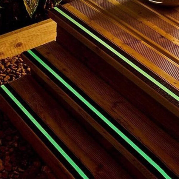 Glow in the dark (photoluminescent) anti-slip tape can be charged by natural or artificial lighting. It’s glow in the dark appearance and excellent anti-slip performance make this tape ideal for enhancing visibility in dark or semi-dark areas. Don’t be left in the dark !